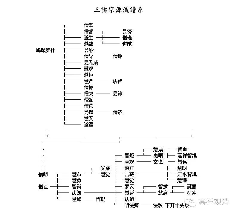 ** 僧朗 ┌── 慧布 ─┴─ 慧觉├─ 吉藏 ──────┼─ 定水智凯**