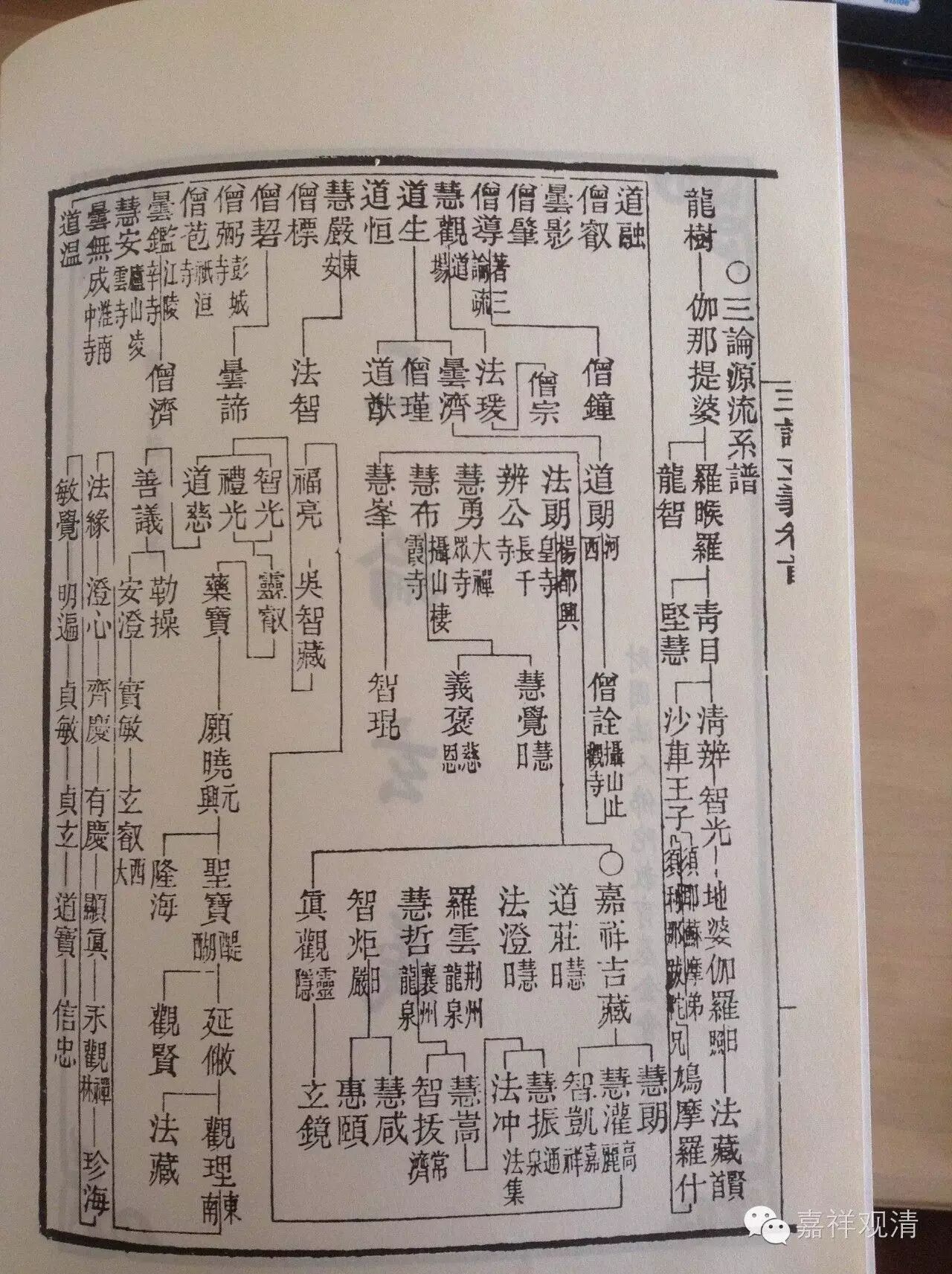 再参考上次的,金陵刻经处版《三论玄义》中依日本传说照录的“三论源流系谱”: