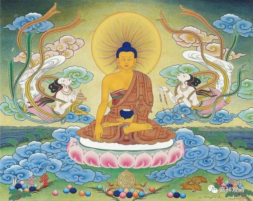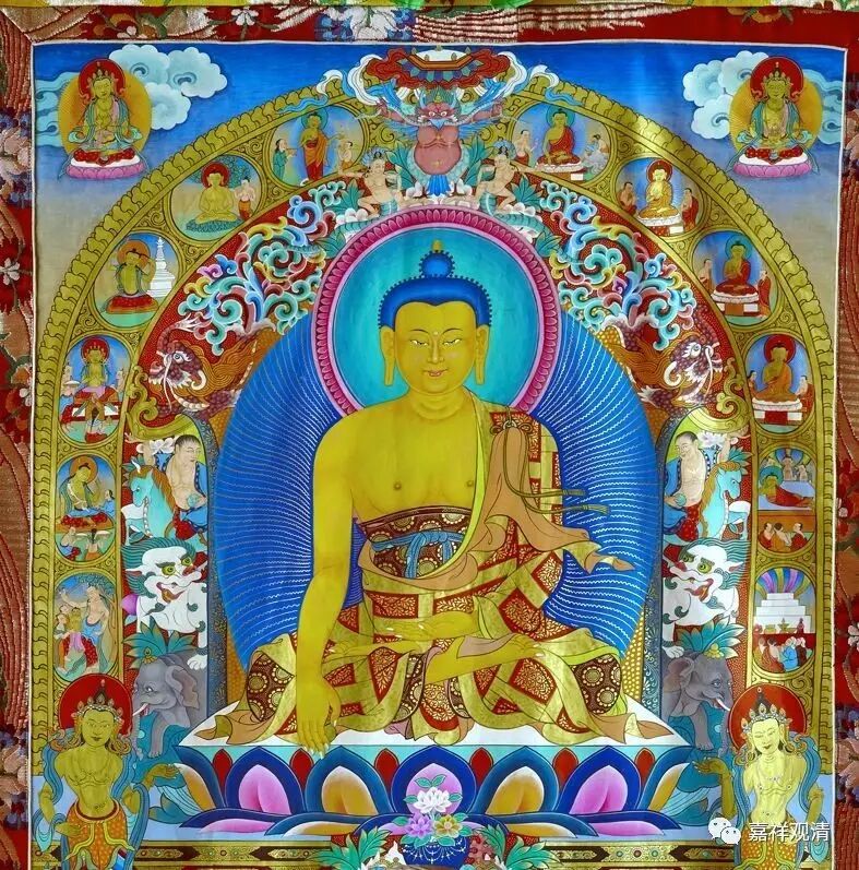 因为讲《金刚经》那个时候须菩提长老在祗树给孤独园,是在寺院当中,所以他在请讲的时候,没有披覆双肩,而是偏袒右肩的。你看,我们进寺院的时候也是一样,本来是披双肩的,进了寺院就会把右肩叠起来。比如我穿藏装的时候,会把右肩的批单叠起来,挪到左肩上,右肩是偏袒的,然后再顶礼等等。大家有机会的话可以稍微观察下。密宗学院的话,基本上右肩都是空着的,每个学院的披法还不完全一样。显宗和密宗的披法表现出来是不一样的,大家一眼就能看出来,衣服的叠法、裙子的束法都有点不一样。