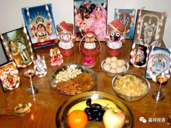 事部、行部的密法里也常见有 “欢喜团”,是一种供品。印度人非常喜欢用这种甜食(其实是多种)堆积的小盆美食来供神,所以供神时,就是“食子”。