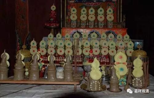 西藏因地制宜,用糌粑、酥油来做供品,是改造了的 “食子”、“美团”。