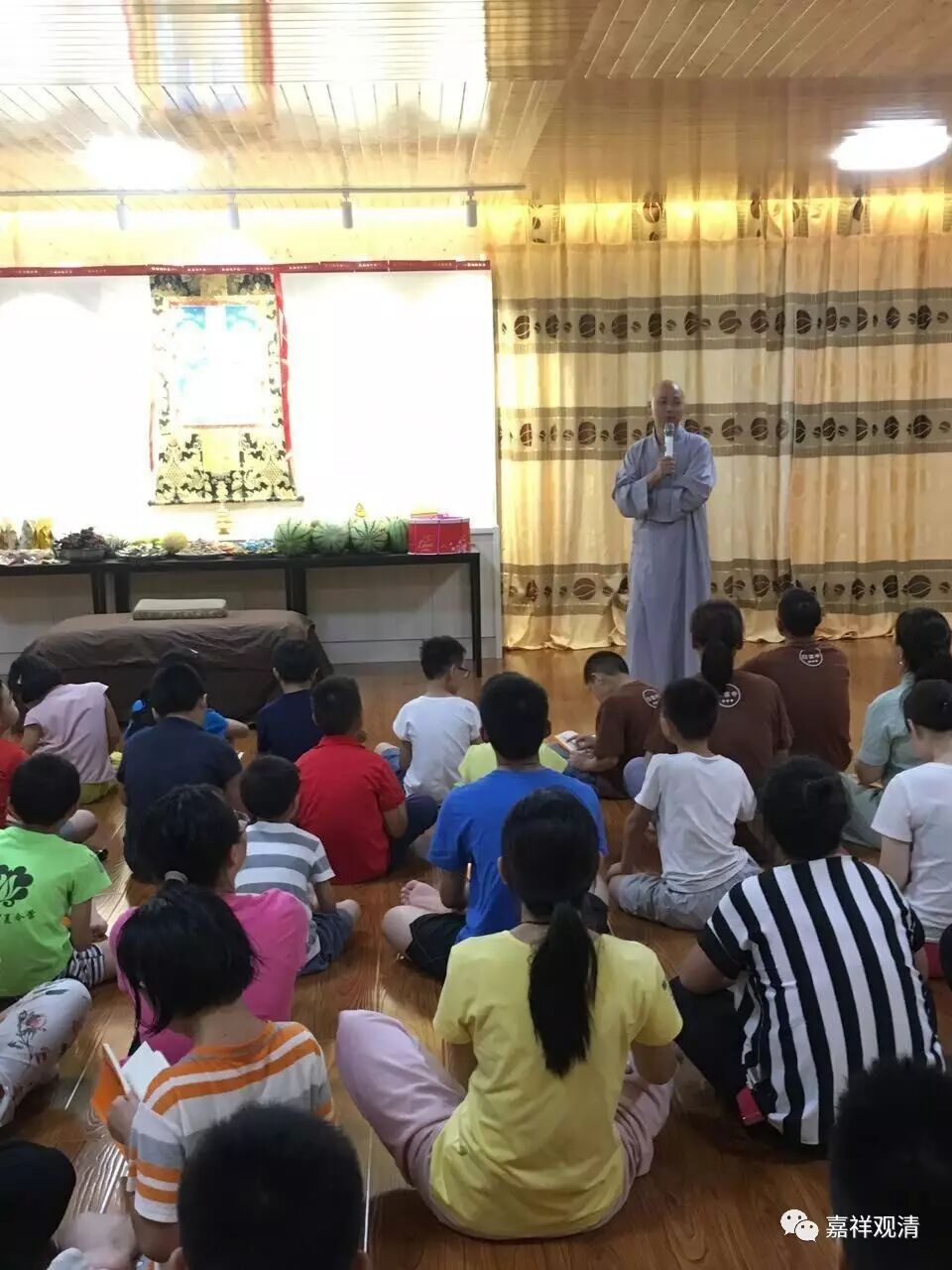 白云寺夏令营全体老师和小朋友参加追思智敏法师法会,并全体参加会供,祈祷法师不舍众生,乘愿再来! 德音未远,来者可期……