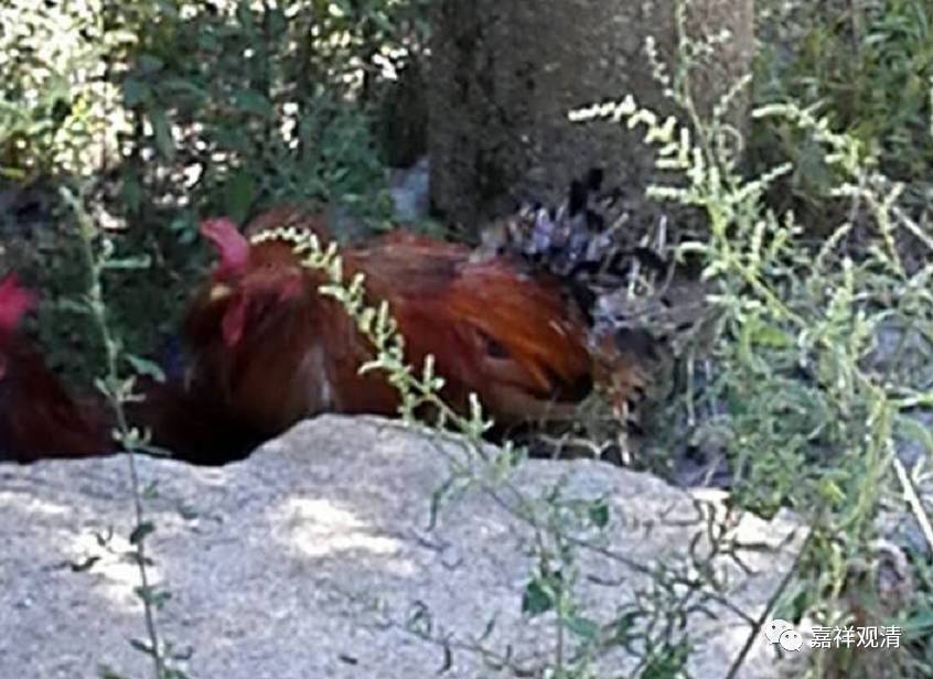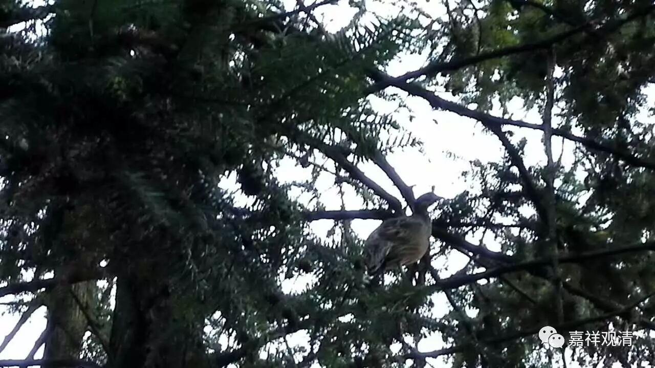 这是只野鸡吧,跑树上去了,这一幕也是小黑的杰作。那天小黑跟着我散步,忽然很警觉的样子,我还以为是草丛里有蛇呢。突然它就兴奋地上了坡,茶园里扑啦啦一阵动静,然后我就看到一只野鸡蹦(蹿?跳?飞?)上树了。小黑在树下来回转着,没辙——可能他想开次大荤吧(哈哈),它跟我散步时,经常蹿草丛里“吃零食”,那些昆虫碰上它算倒霉。