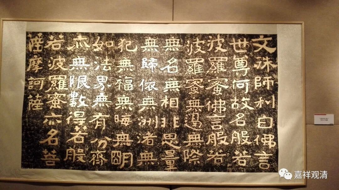 此碑原立于水牛山之巅,现藏山东·汶上县博物馆。上个月去山东汶上参拜宝相寺佛舍利时,在汶上县博物馆见到过原碑。博物馆就在宝相寺正前放几百米处。上面这块是我偷拍(不好意思)的《文殊般若》原碑。(我发现,拿到好的拓本、看过原来实物,对碑文、书法的理解会不一样——和他们相比,单纯地那种出版的拓本感觉略失一贯的气、骨。)