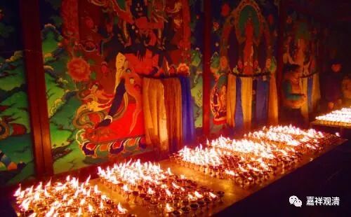 “净化无始以来积聚的一切罪障,尤其损伤吉祥上师的法体、违背上师的教言、扰乱上师的心意,以及不信、凌辱、讥毁等,总之一切依于上师而产生的罪障,犹如烟汁、墨汁一般,从所有根门及毛孔中排出,自身变得清净莹洁。譬如附着于陡峭崖壁上的热灰,用水一冲就冲掉了。又好像手持明灯进入暗室,黑暗自然会消失于无形。这两种比喻,温萨巴大师以为后者的力量更大一些。如是一切依于上师的罪障皆得以清净,一切寿命福德及教证功德皆得以增长,特别是上师身语意的一切加持进入自他一切有情身心之中,自他一切有情都进入到上师的庇护之下。”