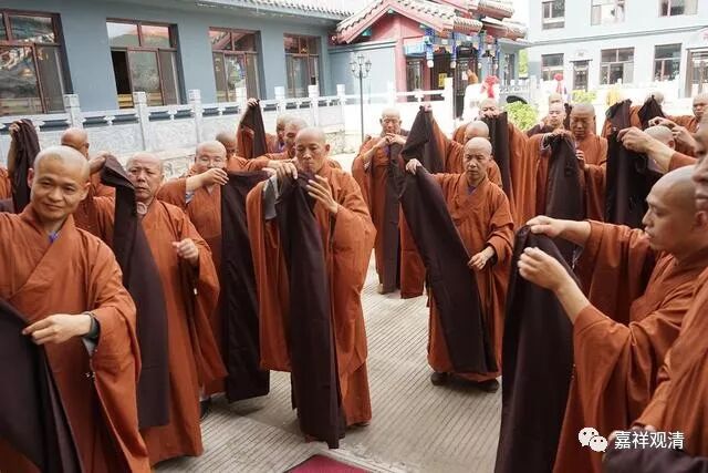 僧人们手里的就是七条衣、郁多罗僧