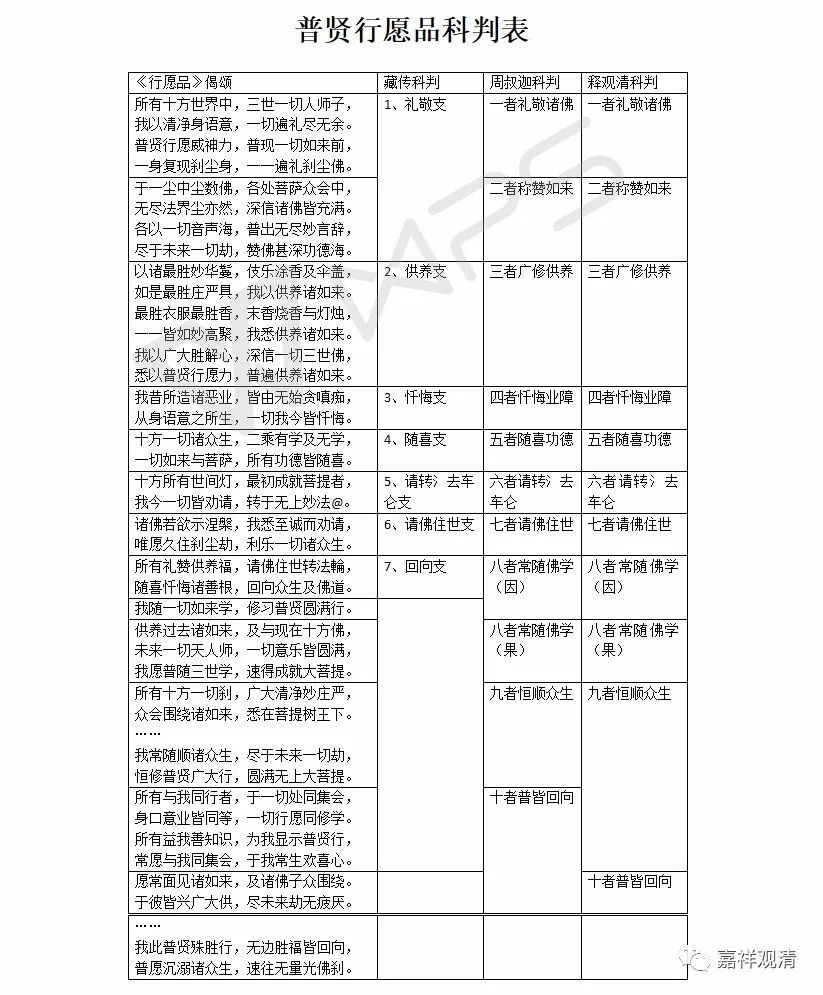 《普贤行愿品》科判问题表解