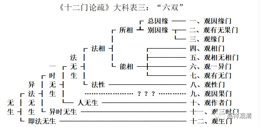 下面再看吉藏为《十二门论》做的第三种科判,同样出自《十二门论疏》卷上的玄义部分。《十二门论疏》卷一: