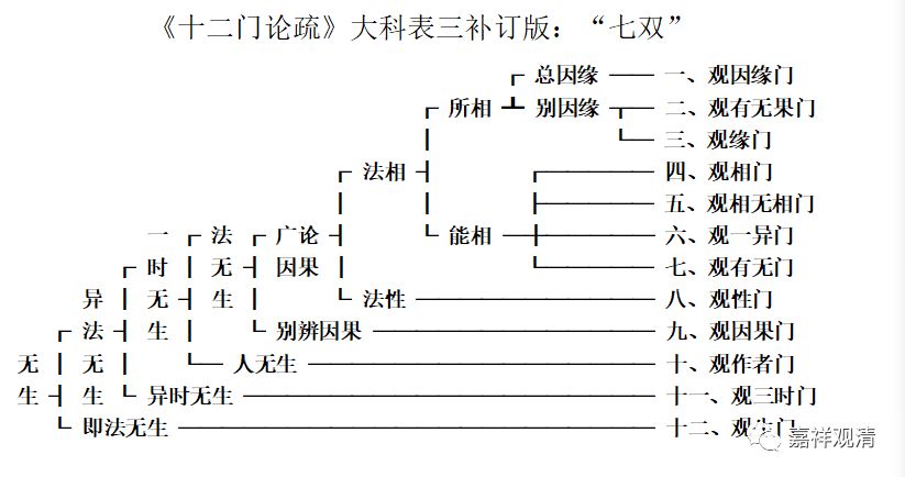 下面,依《疏》文补足的 “七双”,对《十二门论疏》的第三个科判做一下补订——
