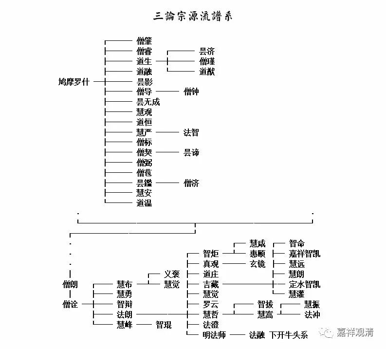 罗什 ——僧肇、道融——道朗——僧诠——法朗——吉藏……