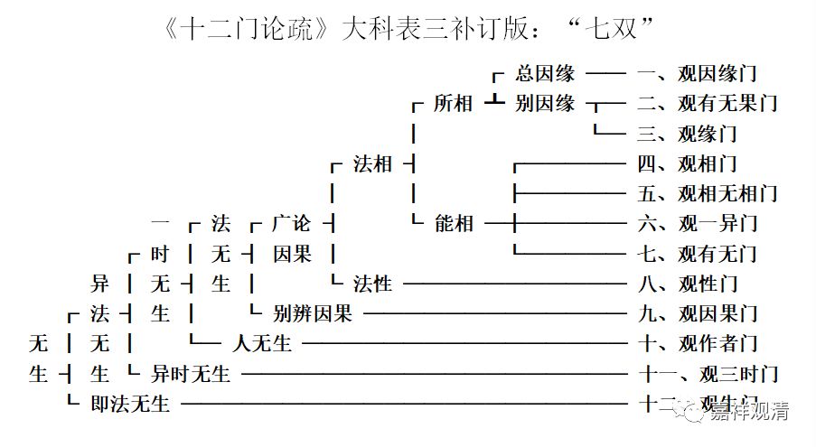 下面,依《疏》文补足的 “七双”,对《十二门论疏》的第三个科判做一下补订——