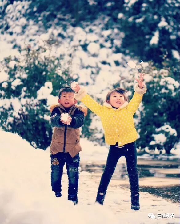 兴奋玩雪的孩子