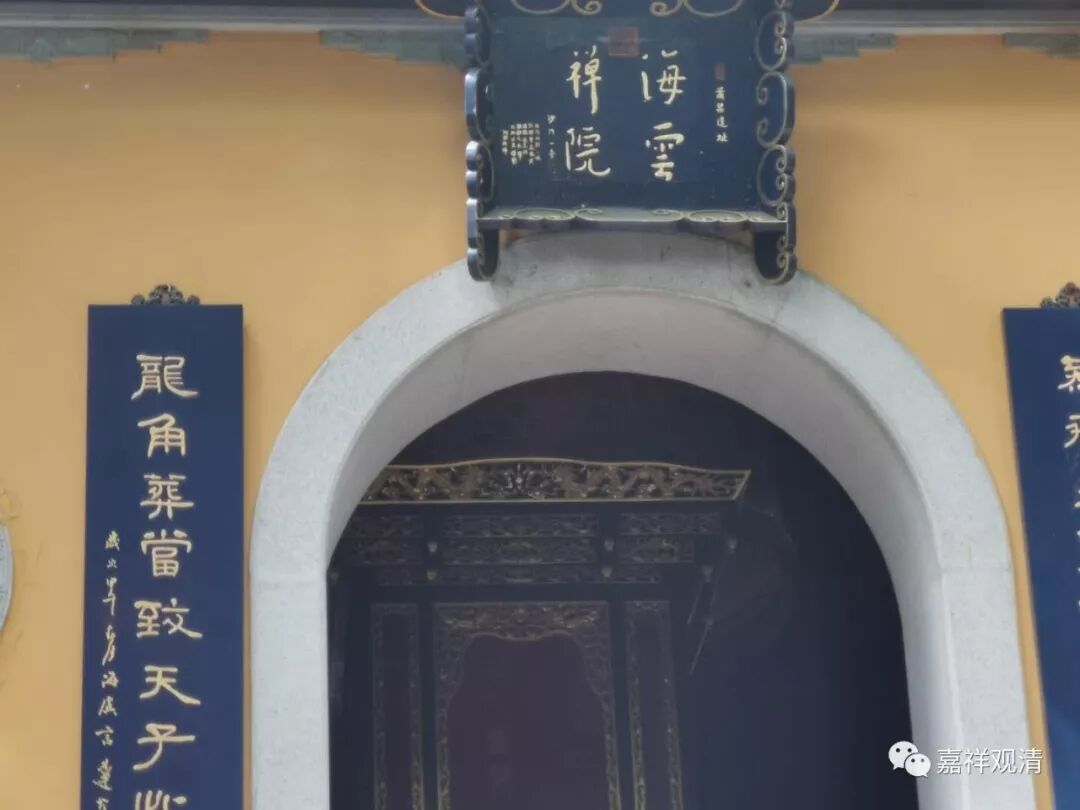 海云禅院的匾是弘一法师题的,对联是章太炎写的: