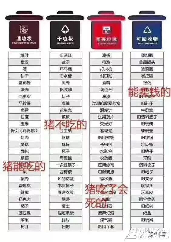 “总的垃圾里面,因为是有‘有害垃圾’的,就总的算‘有害垃圾’,因为,猪吃了会死的。