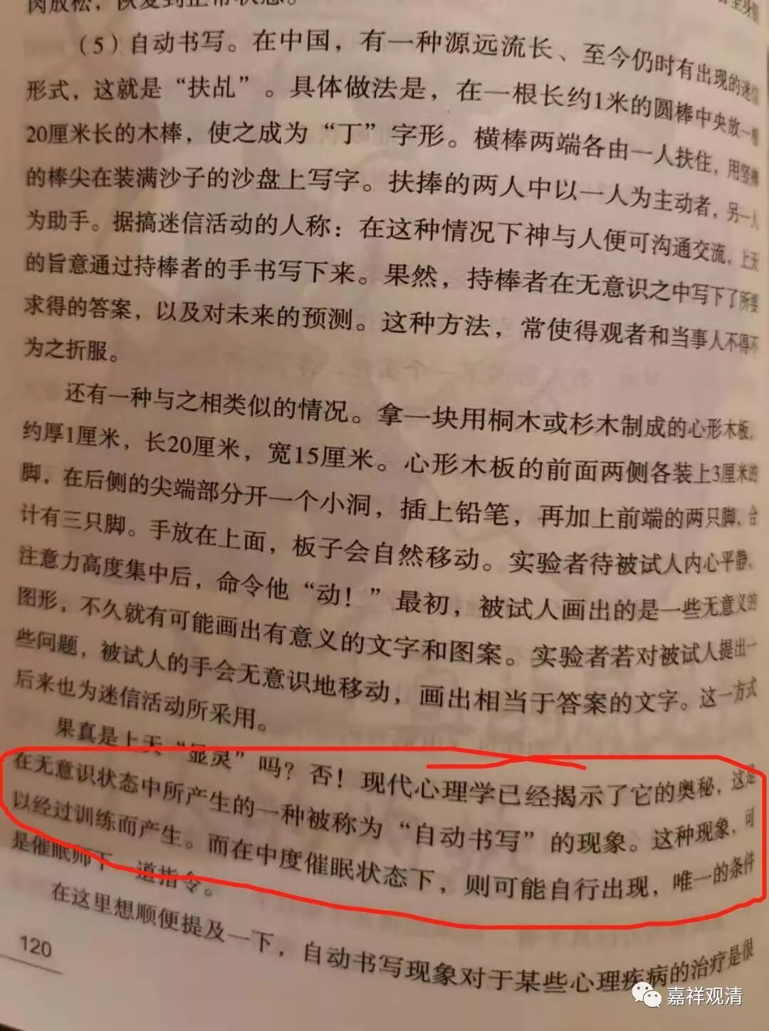 昨天看到教科书《催眠术》里对“扶乩”的一段解释。