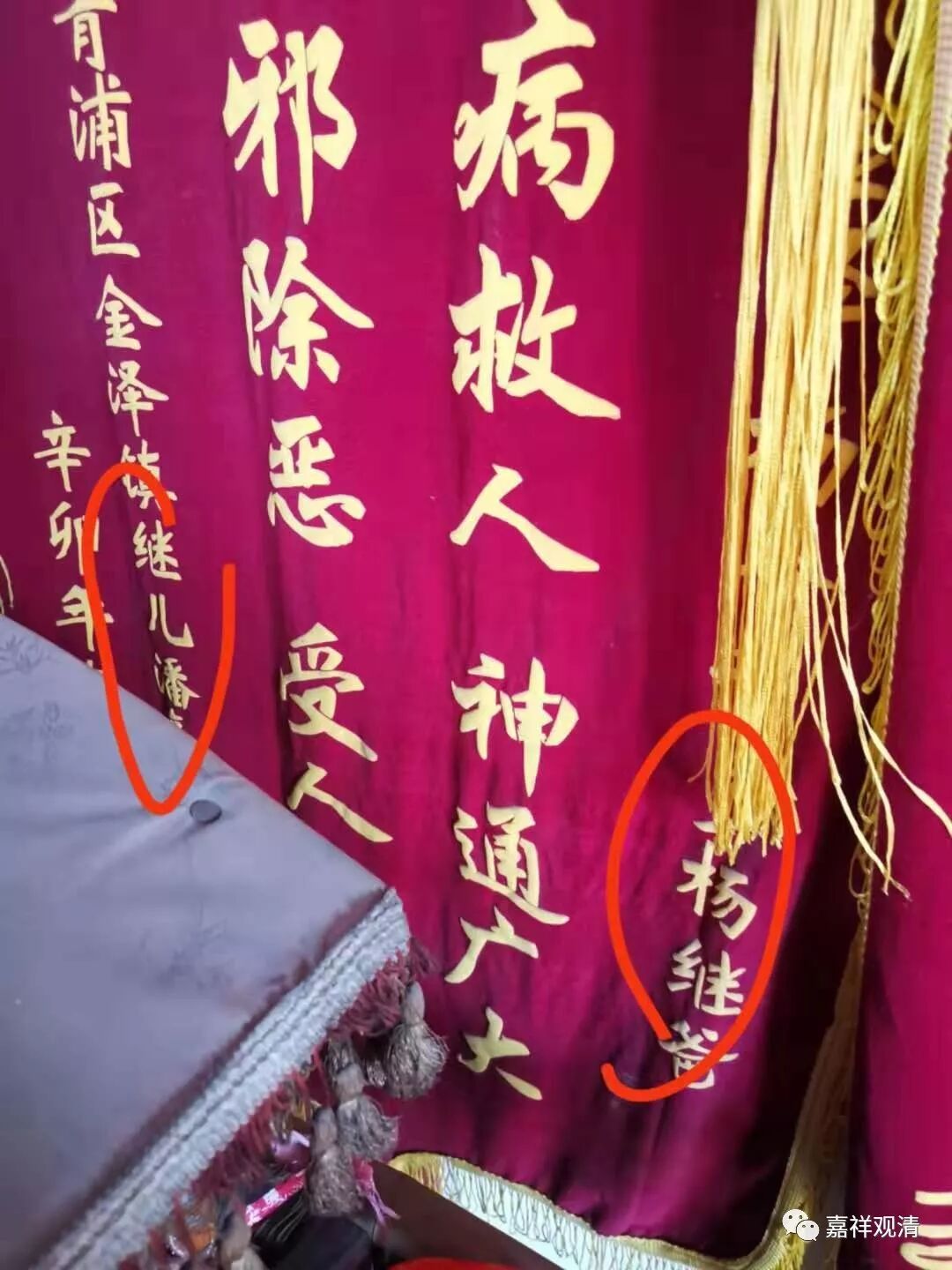上海青浦金泽的杨震庙,就有一排锦旗,都是干儿子、干女儿们病好以后送来的,LOOK!