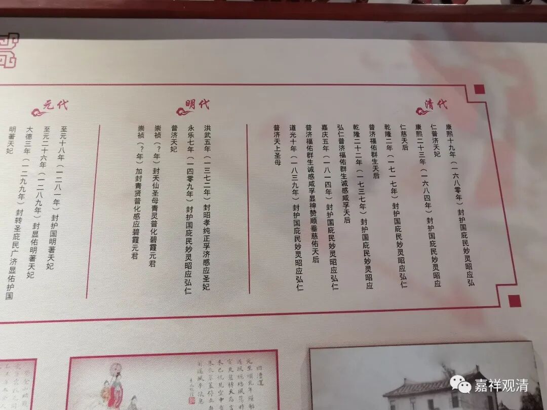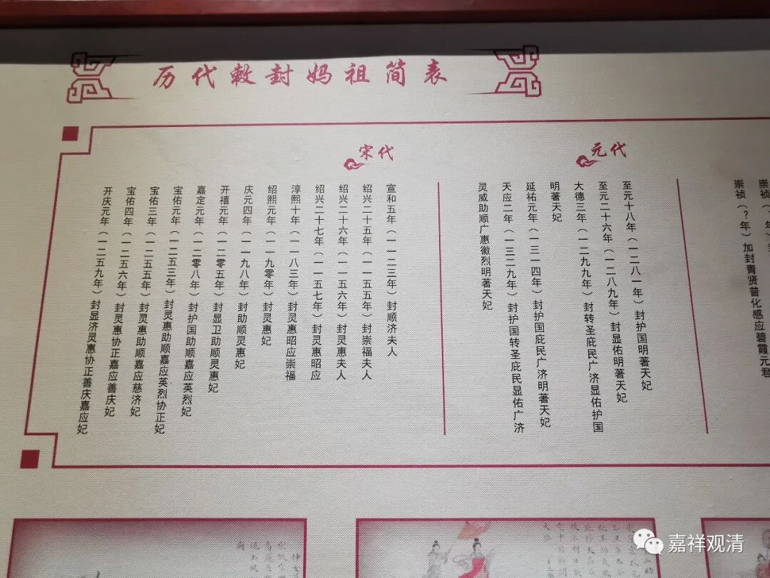 这是烟台天后宫里的一个陈列表,但是,排列的格式不太对,朝代从左向右,每个朝代下面的年代又从右向左,没办法,大家凑合着看看吧。知道个意思就行。