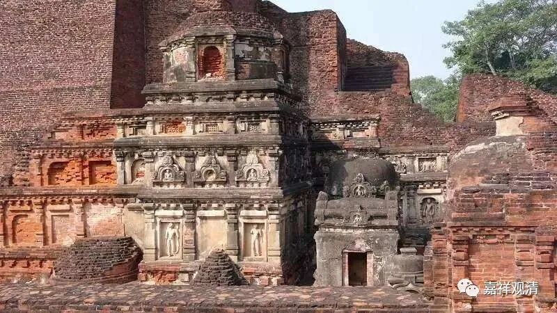 这次我们去印度呢,也去了那烂陀寺,确实是一个大学性质的综合性大型建筑。很可惜的是,里面有很多被烧毁的痕迹。据说那烂陀寺就是因为太大,所以吸引了穆斯林过来抢珠宝。佛教的寺院中一般都会使用大量的金银等装饰,而那烂陀寺又特别大,像一个大的城堡。那时候穆斯林就觉得这里像是一个城市,就攻占了寺院,又杀了里面的一些人,然后把寺院里面的东西也都抢 走了,最后放了一把大火,据说烧了三个月。烧这么长时间,不知道是不是可能,但今天看到那烂陀寺里面确实有很多被火焚烧的痕迹,真的是非常可惜。不过世间上的事物,莫不是如此啊!都是无常的。
