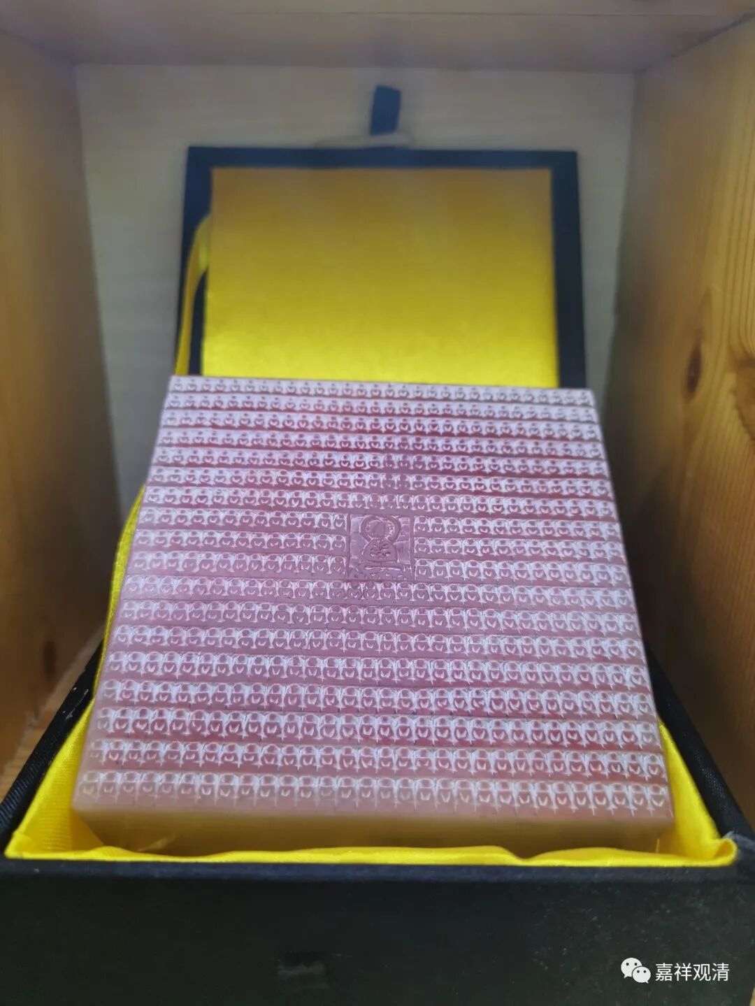 这是捺印佛像的母版。上面类似阳纹,木板现存的这个是阴文、白文。想来应该是朱文印更多见,但朱文印不便保存,白文印更容易保存,所以此枚存世至今。
