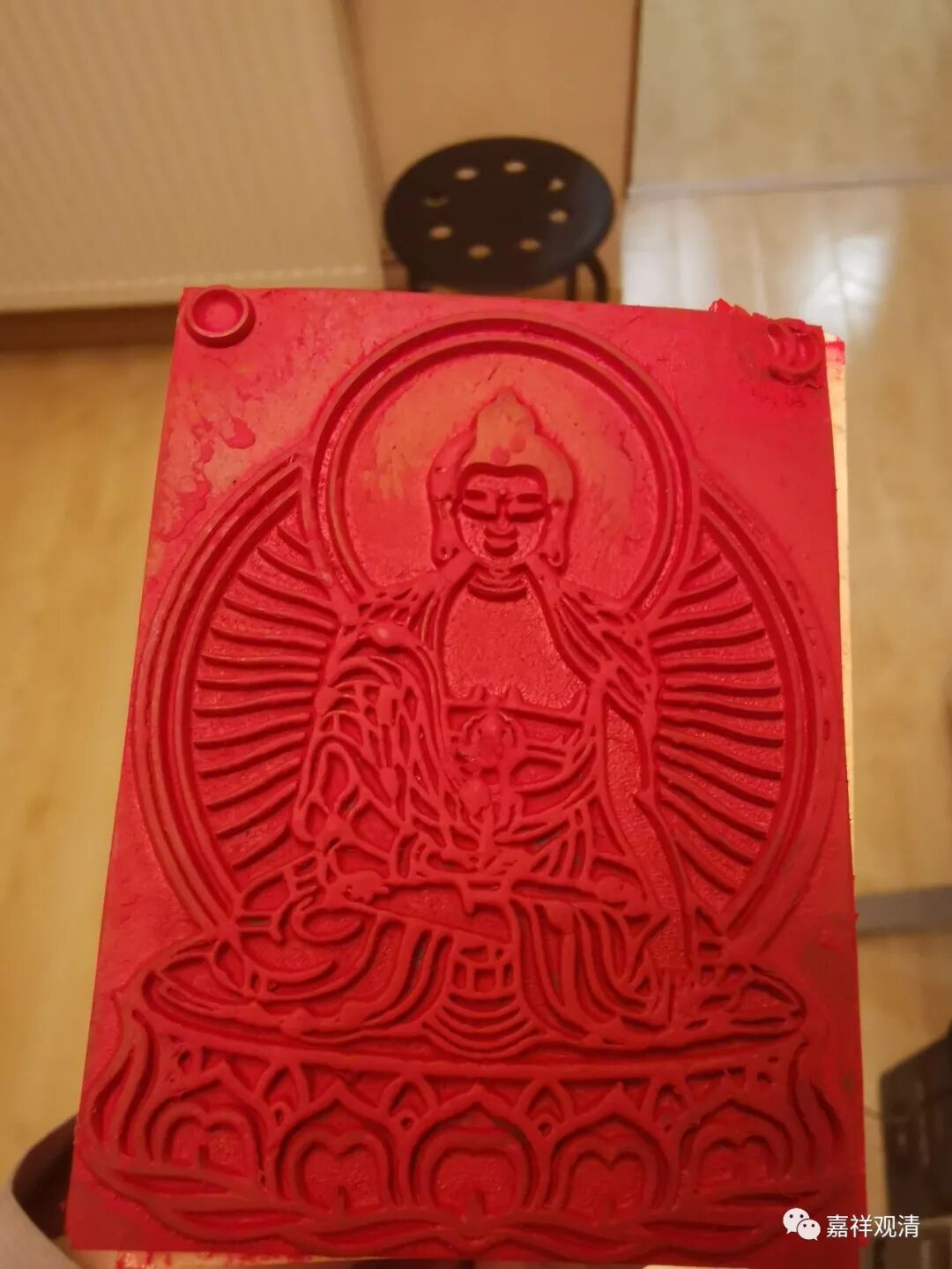 今天下午又有一个居士用我刻的印章完成了捺印十万佛像。这是这四天的第五个了。