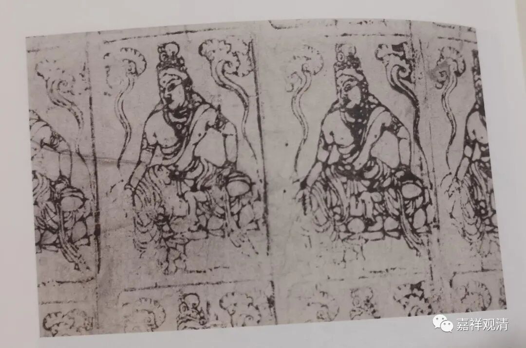 这一件是公元九~十世纪的“捺印千佛”的菩萨像。照片上可以看见图版上下还有菩萨像。