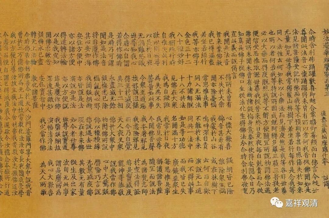 《妙法莲华经》一般为七卷(去年上海博古斋秋拍有一个八卷本的),瑞光寺塔第三层发现的有六卷(卷轴装),缺第六卷(据说 “被毁”)。
