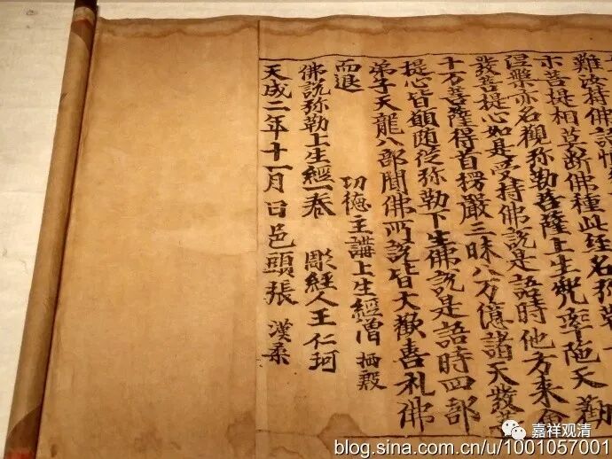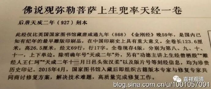另外,还有五代时期后唐天成二年(公元 927年)《佛说观弥勒菩萨上生兜率天经》为国内现存最早、世界第二的现存有纪年的雕版印刷品原件。2002年国图入藏。