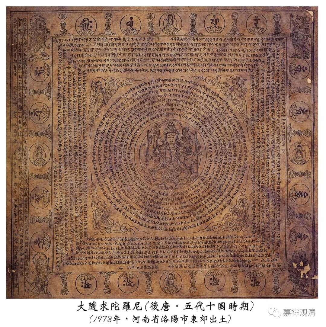 这两件都是 “大随求陀罗尼”。书里面写的是“大隋求陀罗尼”——博物馆又写错了。总算没写“大隋·求陀罗尼”,据说还真有学者闹过这个笑话。其实两个咒轮里都很明显写的是“大随求”。