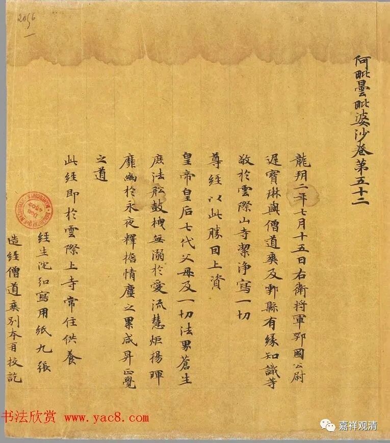 前两天提到,基大师的堂兄弟尉迟宝琳出资抄写《阿毗昙毗婆沙》(即玄奘译之《大毗婆沙论》),后面有个题记 ——