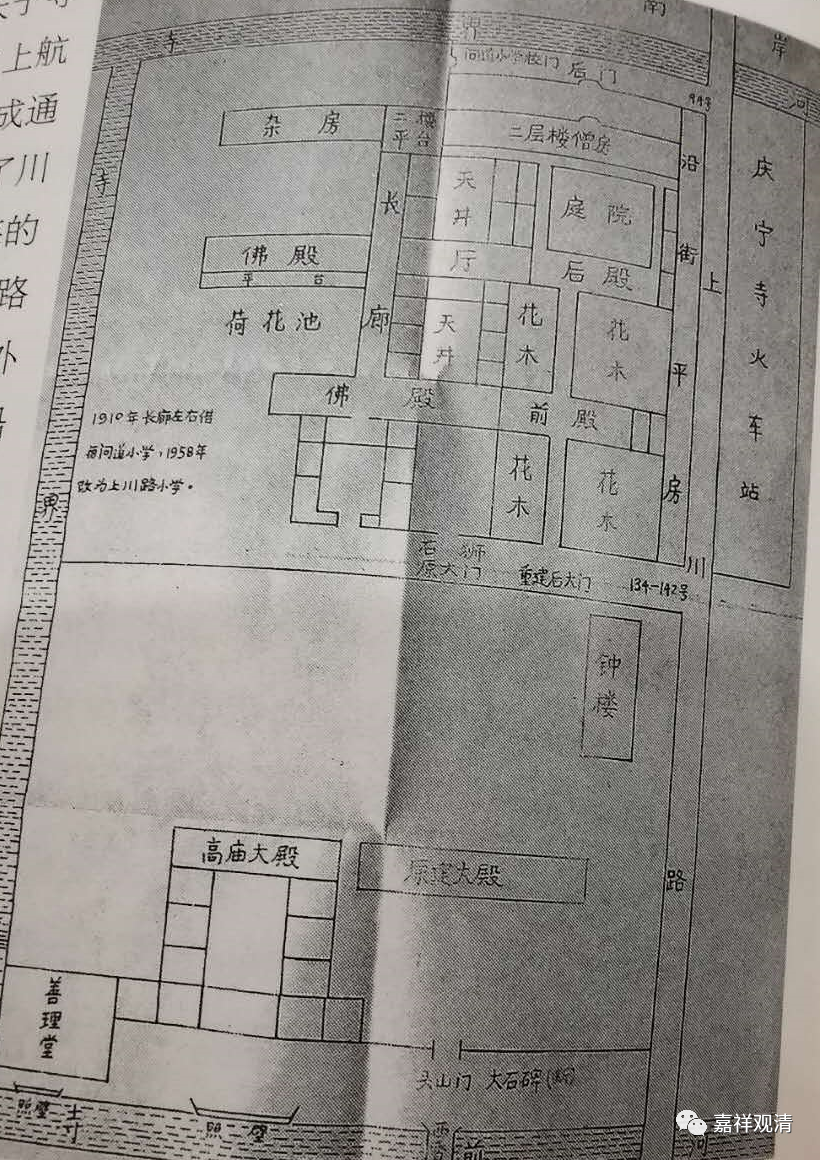 1910年,寺院的长廊租给问道路小学办学(应该是为了躲避“寺产兴学”的风潮。那个时候很多寺院或主动或被动的办学)。到了1958年,庆宁寺改为上川路小学的校舍……“庆宁寺”就只成为地名了。
