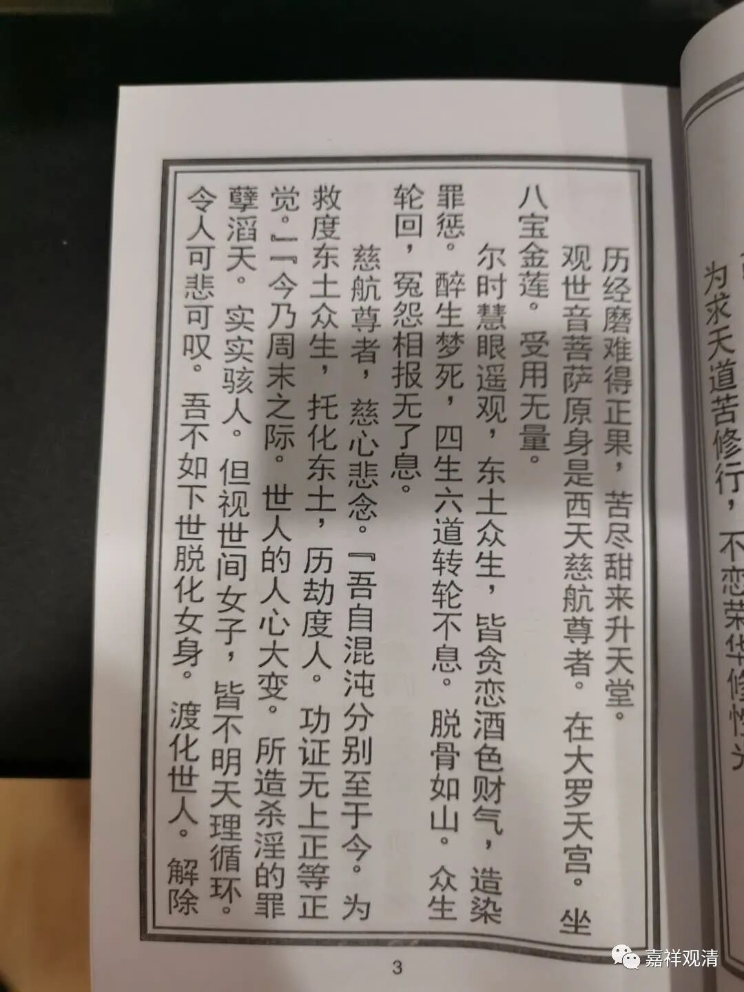 我把 “经书”拿来翻一翻,是这几年印的,纸张、印刷、装帧拙劣。字很大,都是顺口溜性质的“经文”,而且 有三阳佛的说法。这是明显的民间宗教背景了。民间宗教里经常有青阳佛、红阳佛、白阳佛的说法,这一点,那谁 xh上人也经常会谈到“红阳佛”(也叫“弘阳佛”,民间宗教里还有弘阳教)露出他的“学术根基”“家学渊源”“师承相传”。