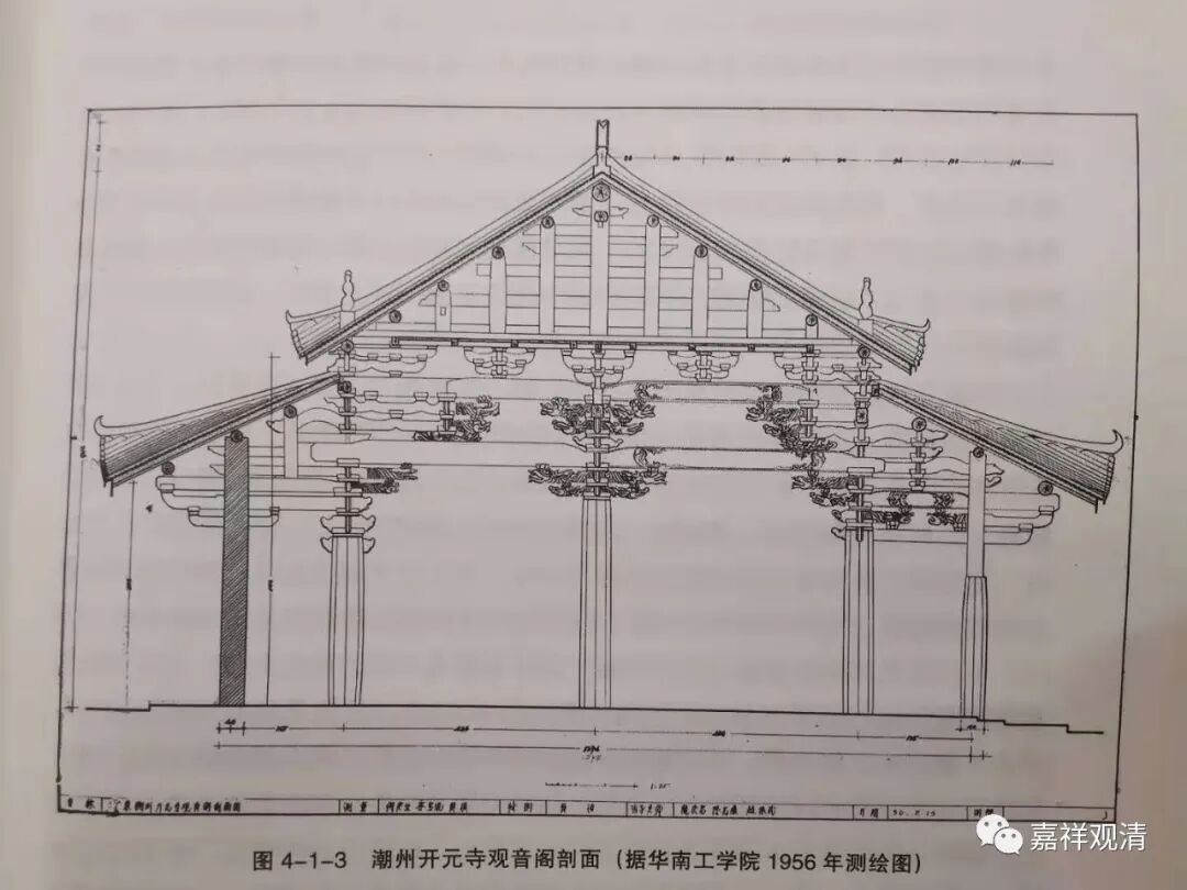 据《潮州市佛教志·潮州开元寺志》所记载,潮州开元寺之观音阁建于唐开元二十六年(公元 738 年),至宋康定元年(公元 040 年)重修,至庆历三年(公元 1043 年)竣工,明弘治年间(公元 1488 ~ 1505 年)、万历十九年(公元 1591 年)又经两次大修,清康熙五十四年(公元 1715 年)和光绪元年(公元 1875 年)更复修茸,建国后之 1957 、 1982 年又经两次修竣,明年如果开始这个修竣工程的话,将是建国后的第三次修缮了。