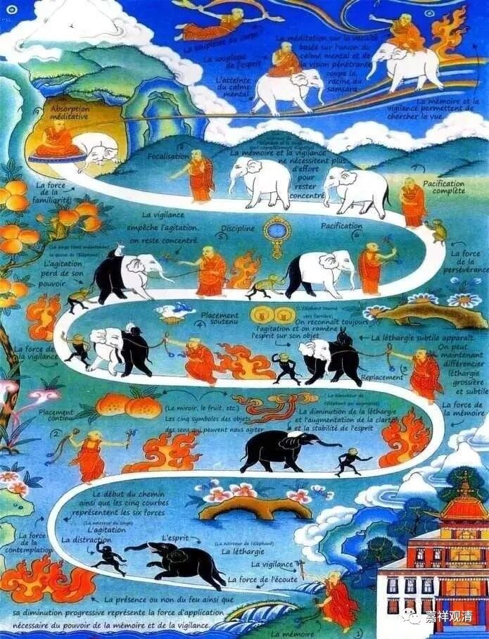 **“若落路入草便牵出; ”如果心偏到其他地方去了,就把心抓回来。“若犯人苗稼即鞭挞。 ”如果心散乱了,跑得很远了,那就该好好地修治。“调伏既久,可怜生受人言语 ……”**后面我们就不讲了。