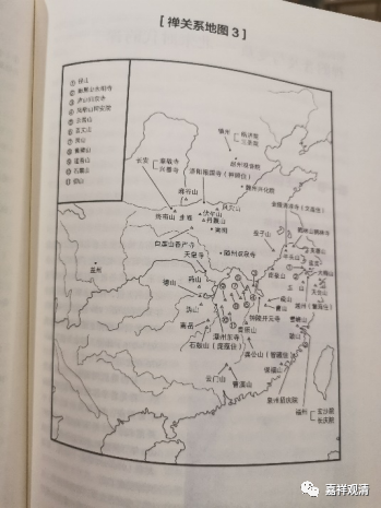 然后往下是赵州观音院,就是赵州从谂禅师在的那个地方,在石家庄的南面一点。往下是魏州兴化院,就是兴化存奖禅师。往左下,风穴山,就是风穴延沼 禅师, 是吧?丹霞山,丹霞天然禅师。伏牛山,伏牛自在禅师。南阳,南阳慧忠禅师。钟南山旁边,圭峰宗密禅师,这个圭峰是在西安的西南面不远的地方。北边一点就是麻谷山,麻谷宝彻禅师。长安这里有章敬寺,就是我们前面讲的章敬怀晖禅师,对吧?他当时被朝廷封为国师的,所以禅宗百丈淮海禅师这一系能够支撑起来 和他在中央也有关系。