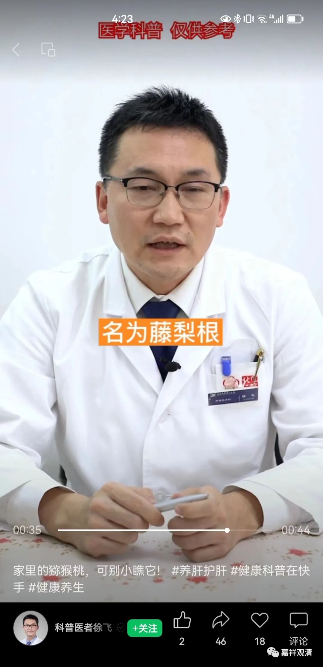 正好山下的村医也在,我问这是啥,他说“这是猕猴桃根,有抗癌作用。”我这学中医的还是第一次听到“猕猴桃根”这味中药,上网一查,果然有它,有利尿消肿、清热解毒、外用可以接骨消肿,还能抗癌……又叫“藤梨根”。