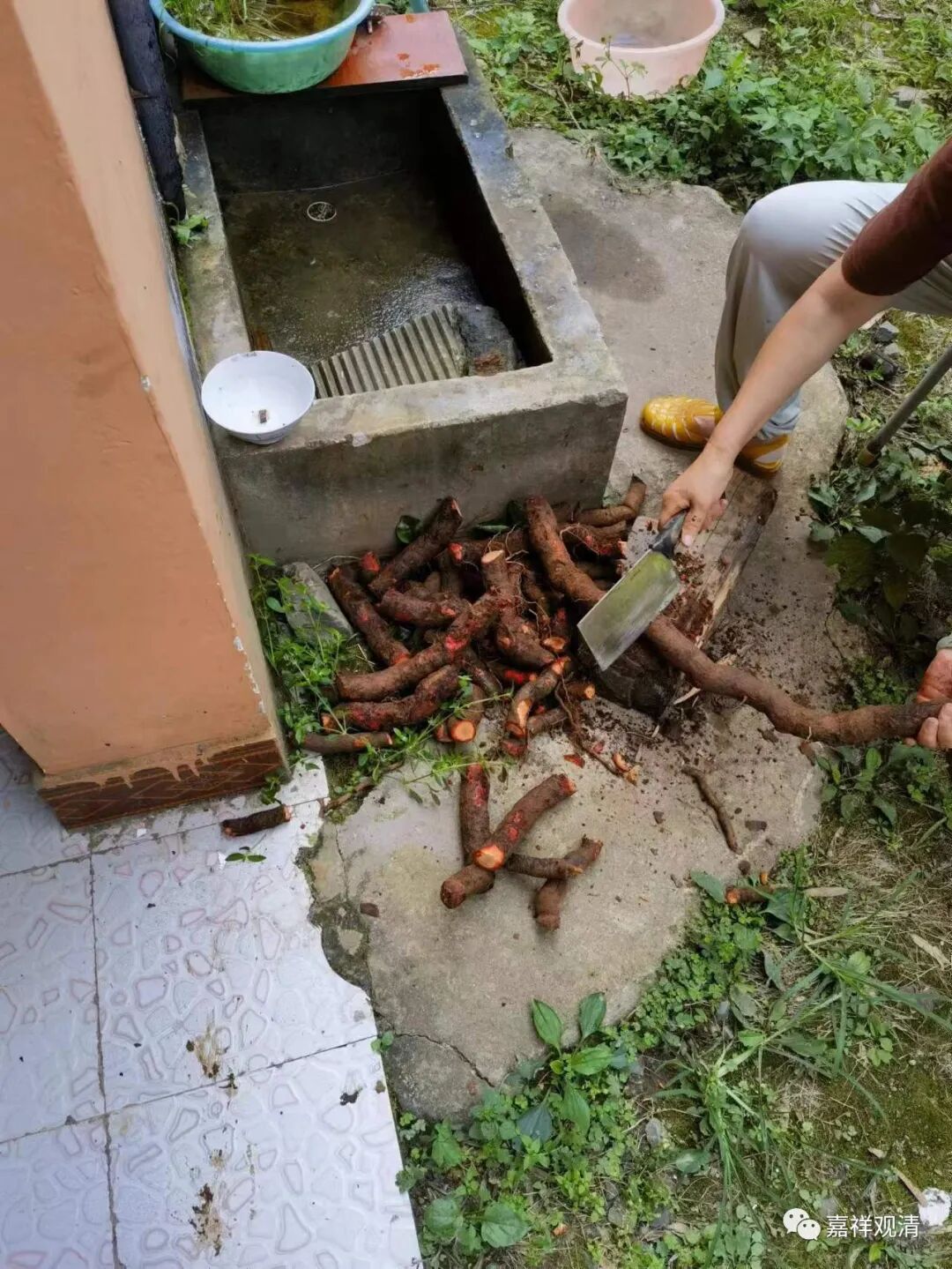 刚才他们洗了,剁了,说还要再去皮、切片、晒干……
