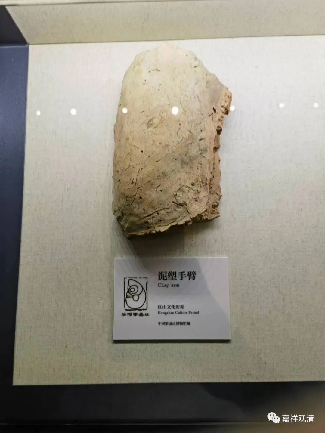 同一地方出土的泥塑手臂,这是原件