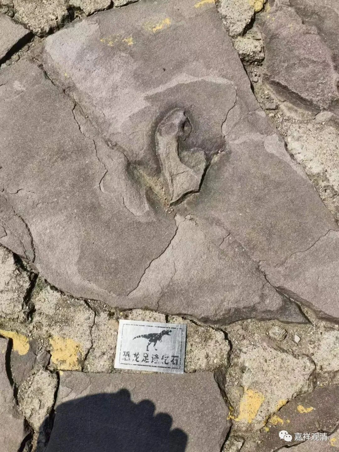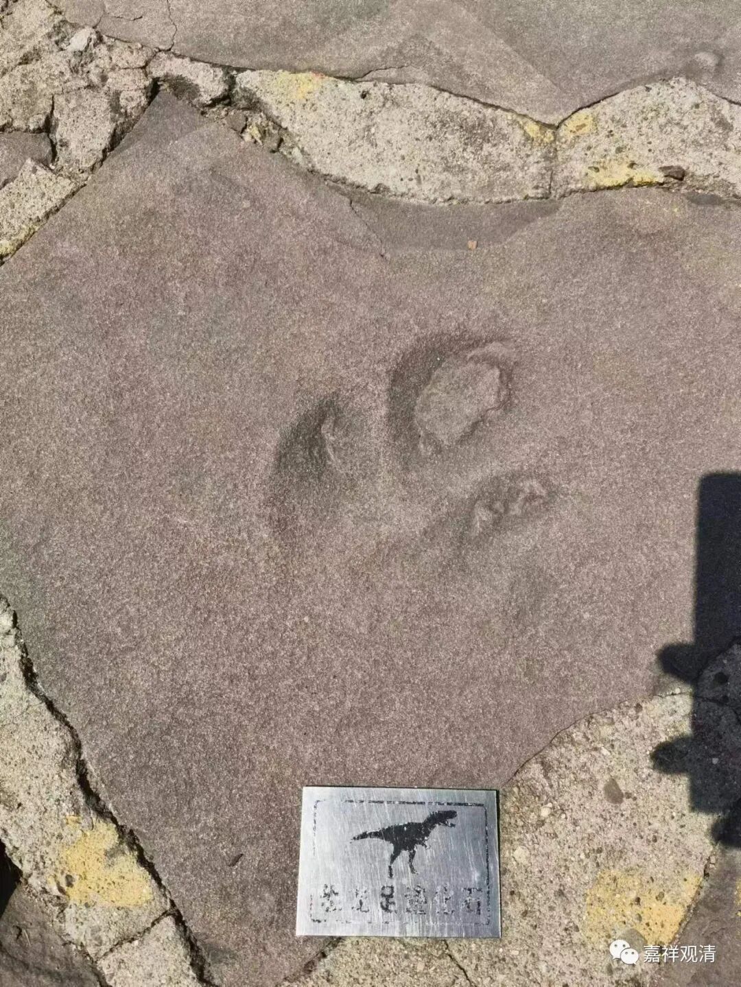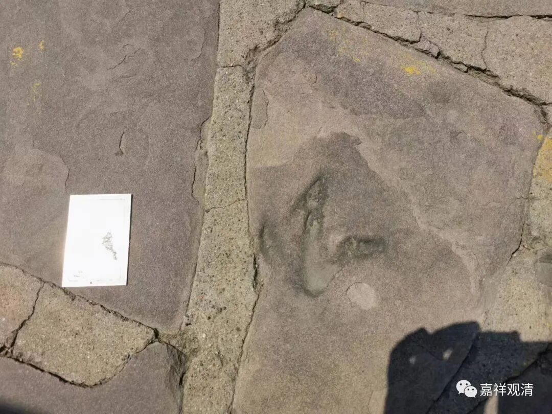 小布达 拉宫一处牌坊前,我们的 “化石大牛”居然发现了恐龙脚印,大家四周一找,发现了十来个,旅游部门都标了出来。 这是当年开采来的石料自带恐龙足迹化石,据说来自河北青龙山。 到时候可以查一下相关资料……