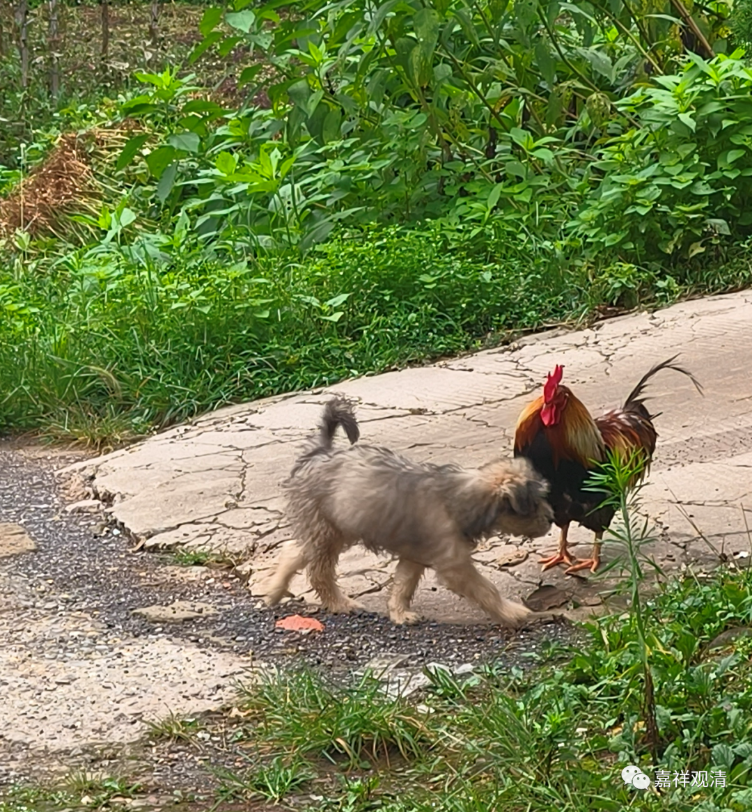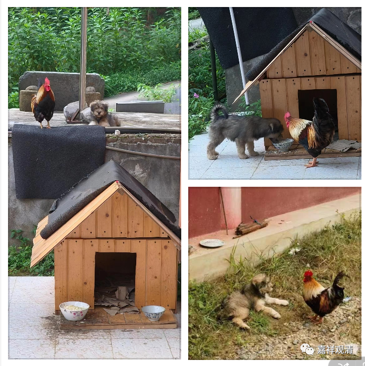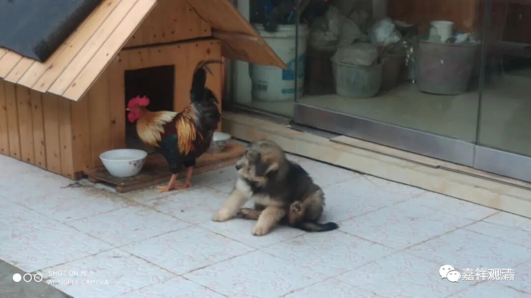 大公鸡顿时感觉领地被占,疯狂进攻“新生”,甚至放着自己的食物不吃而去抢吃狗粮——