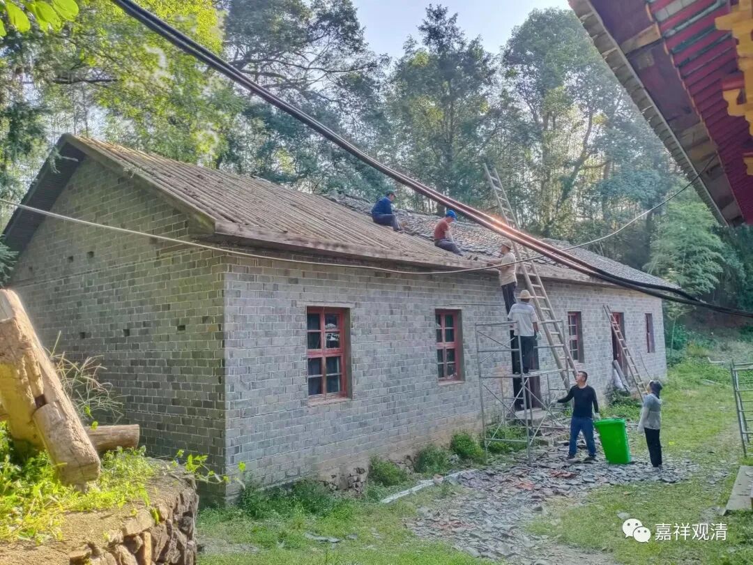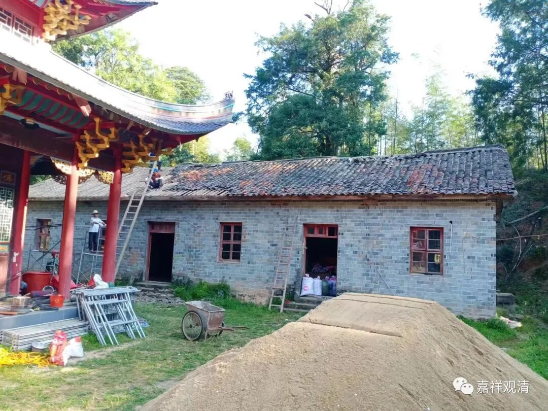 那时候山上还没有通水泥路,有的只是徽饶古道的台阶石板路,所以觉超师父造庙就比我要辛苦(我是先修路再造庙的)——木头是他下山到左右村里、乡里化缘来的,让捐献的人自己送来;砖头(青砖)都是让人挑上山的,一块五分钱,居士运砖头就少收一半的钱,算义工。当时连村里的小孩子都在帮忙运砖头,一天搬个几块,几毛钱的零花钱就有了……