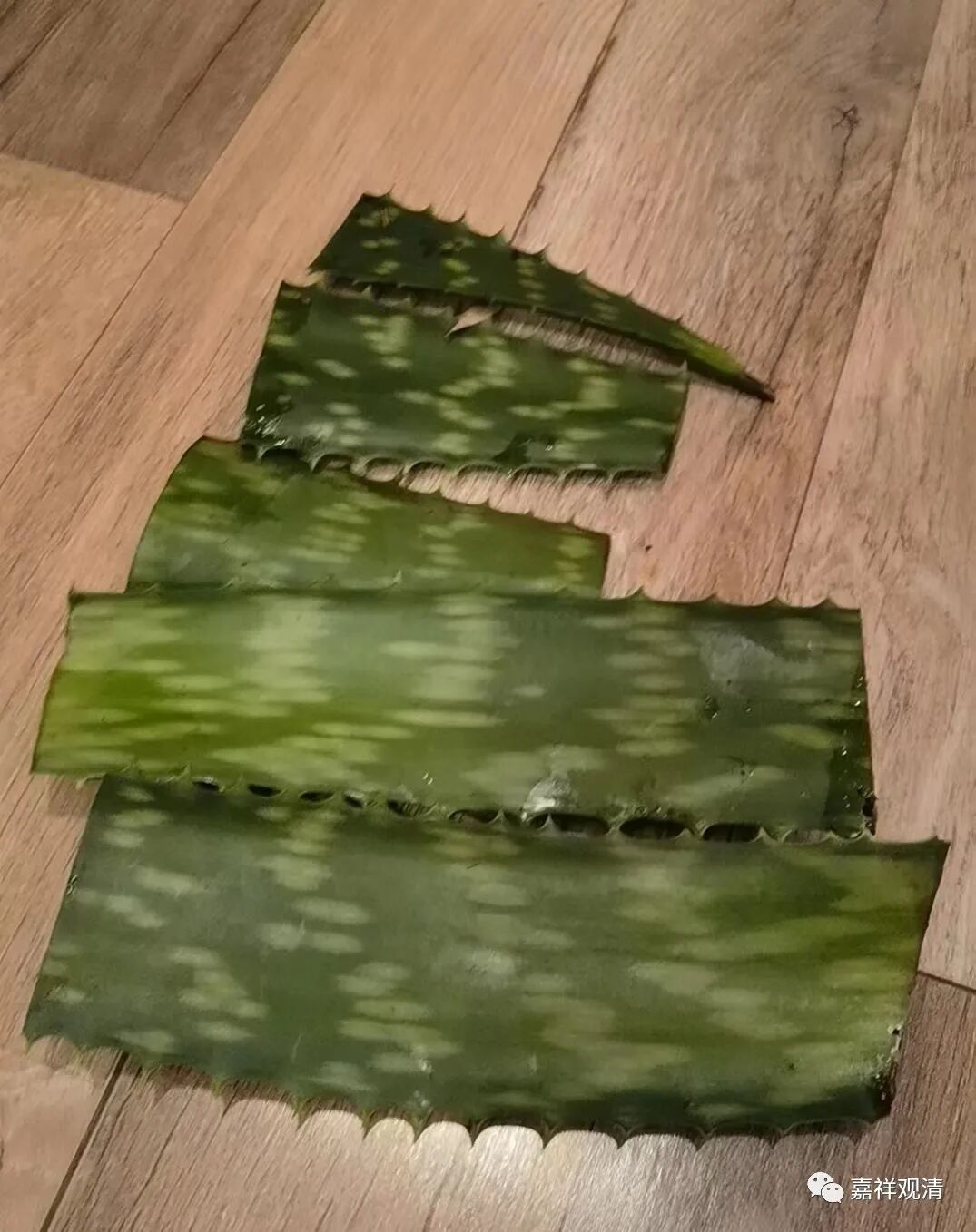 和留守老居士聊天,给他搭脉看了病,还给他颈椎复了位。临走的时候,老居士割了几片芦荟送我——这两天脸和脖子都晒伤了,颧骨晒出了高原红,洗脸都生疼,老居士说拿点芦荟去抹一抹……