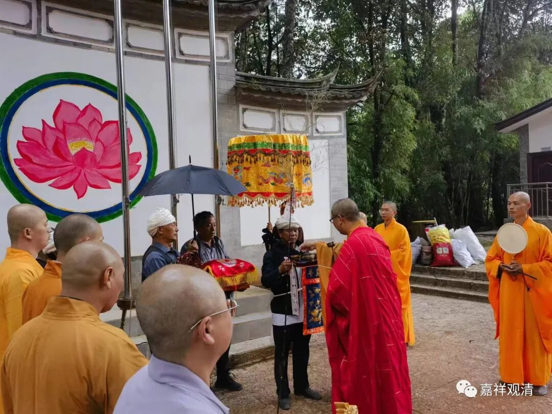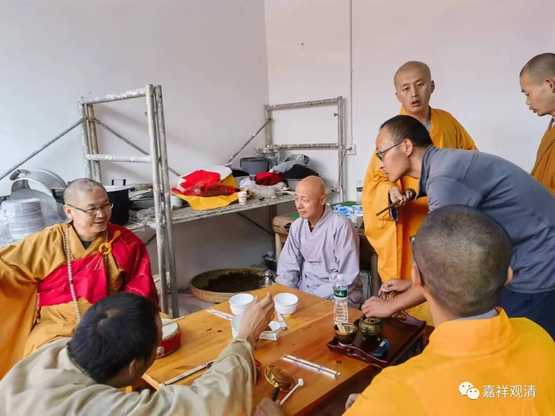 出家人先到寺院,准备了全套迎骨灰(舍利的原意就是骨灰。)
