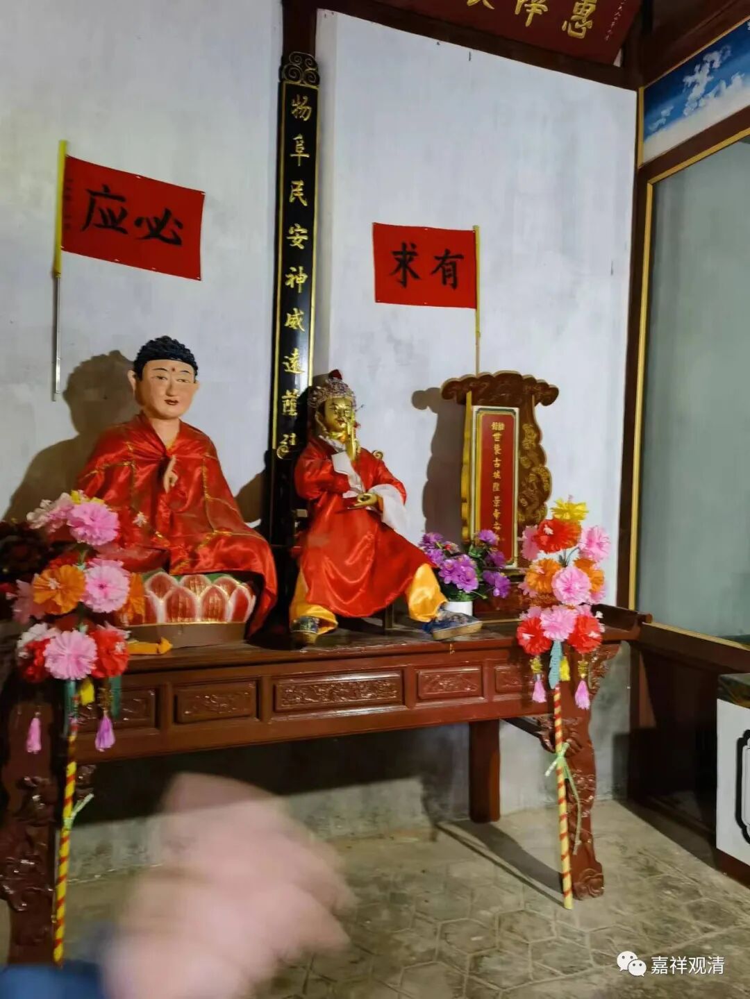 左边这两尊,负责的老人说,“都是佛祖”,一位是成佛的佛祖,一尊是太子像。二月初八的时候,镇上会有“游神”,这两尊佛像都会被抬着在镇子上走一圈,其中,太子像“骑马”,佛陀像坐轿。也蛮有道理的,佛陀圣诞,带个小孩样子的出去,合理!