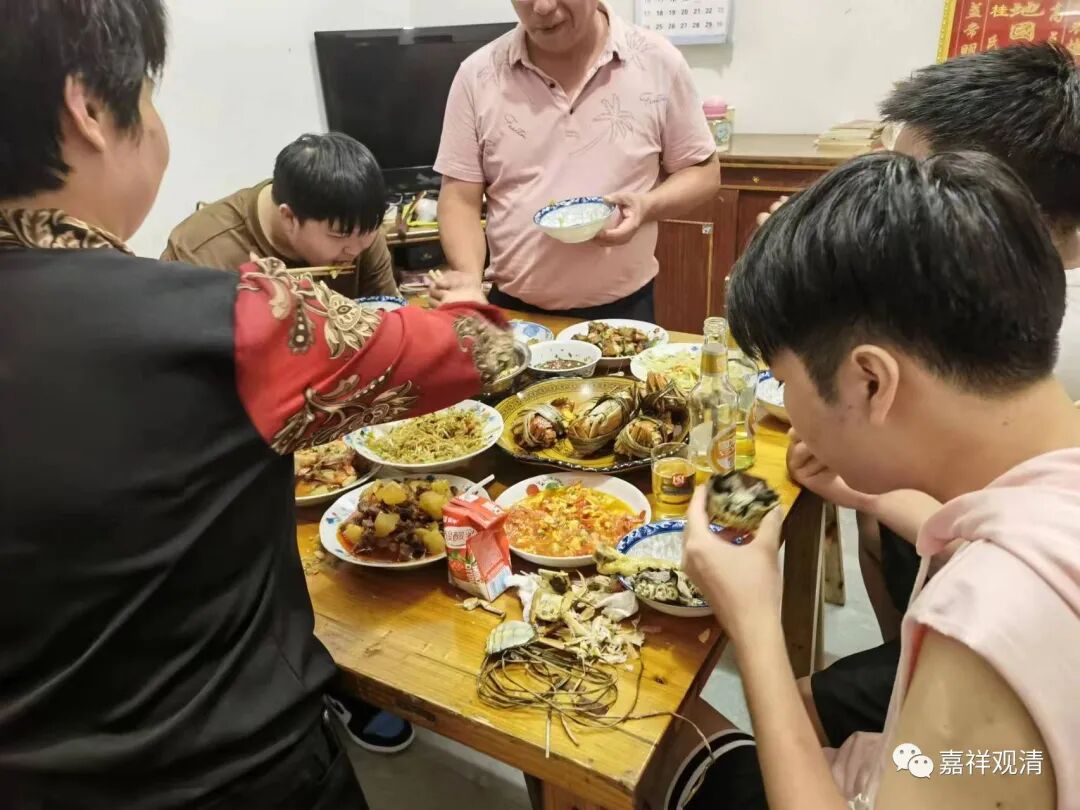 另一家居士家里来了客人,桌上还有大闸蟹。