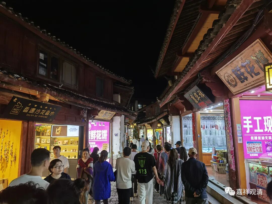 白天,丽江古城的街上人流还比较“克制”,晚上人就比较多了。那天我对着旅游地图看到丽江有夜市,就找了过去。
