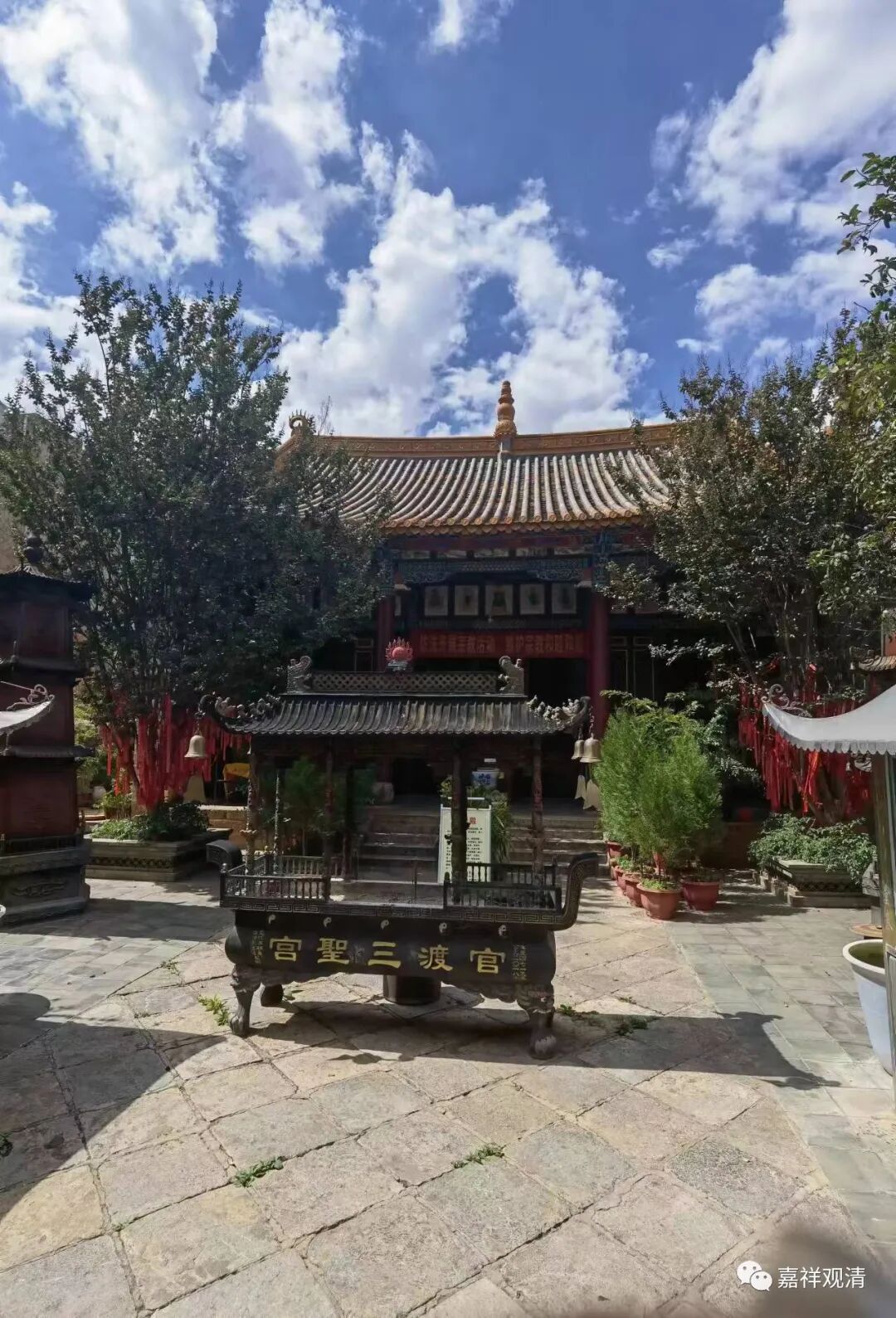 “三圣宫”的称呼各地都有,但并不“特异”,有的“三圣宫”的“三圣”就是三清(玉清元始天尊,上清灵宝天尊和太清道德天尊),有的三圣是指三教的“圣人”(孔子、老子、释迦佛),束河古镇的三圣宫则供的是观音、孙膑和龙王,我问了一下三圣宫的道长,道长说这里供的三圣是:孔子(孔圣)、文昌帝君(文圣)、关羽(武圣)。