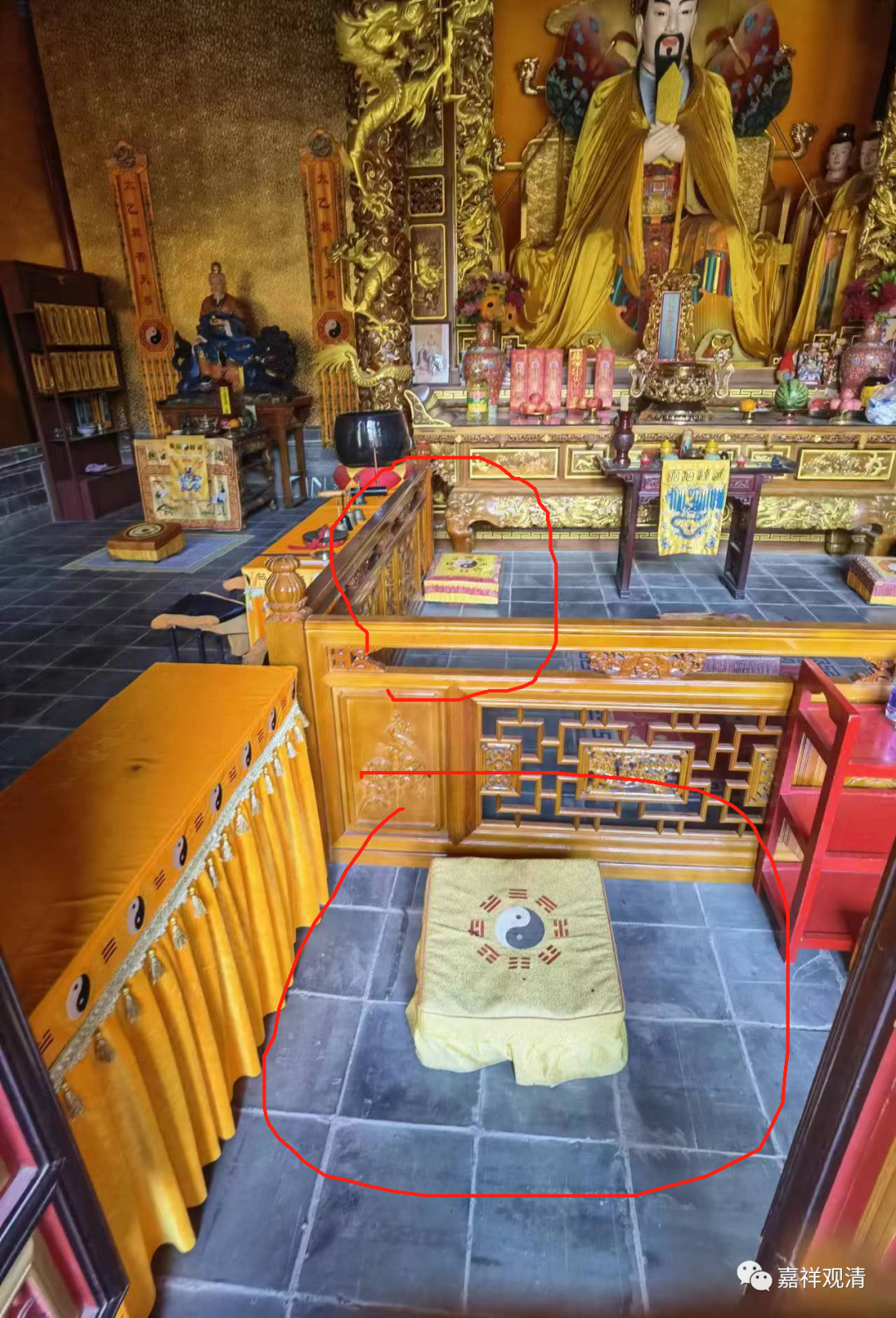 我看他们拜垫上的八卦有点不一样,就“请教”常住的道长,道长似乎也是第一次被提醒,就说是采购得不一样。其实这是“由内而外”和“自外向内”的“视点”不一样造成的八卦图像不一样。(我心里有点暗暗“骄傲”,呵呵,我比道长多懂点“八卦”。)