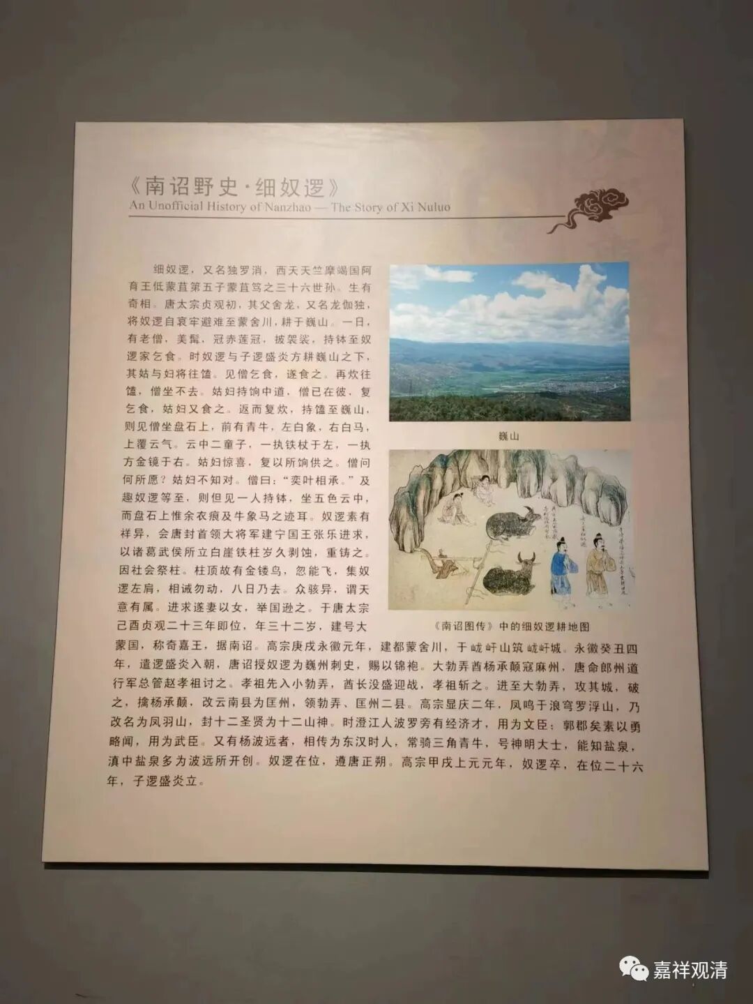 南诏第一代国王细奴逻。据传他父亲的名字叫“迦独庞”“舍龙”“龙伽独”,这很明显是译音,其中,“舍”是地名,即蒙舍川;龙、庞都是龙;“迦独”“伽独”则应该就是梵文“ naga ”龙!这不就是“蒙舍川的龙”嘛!怕大家不认,还用汉文 + 梵文双重肯定一下!