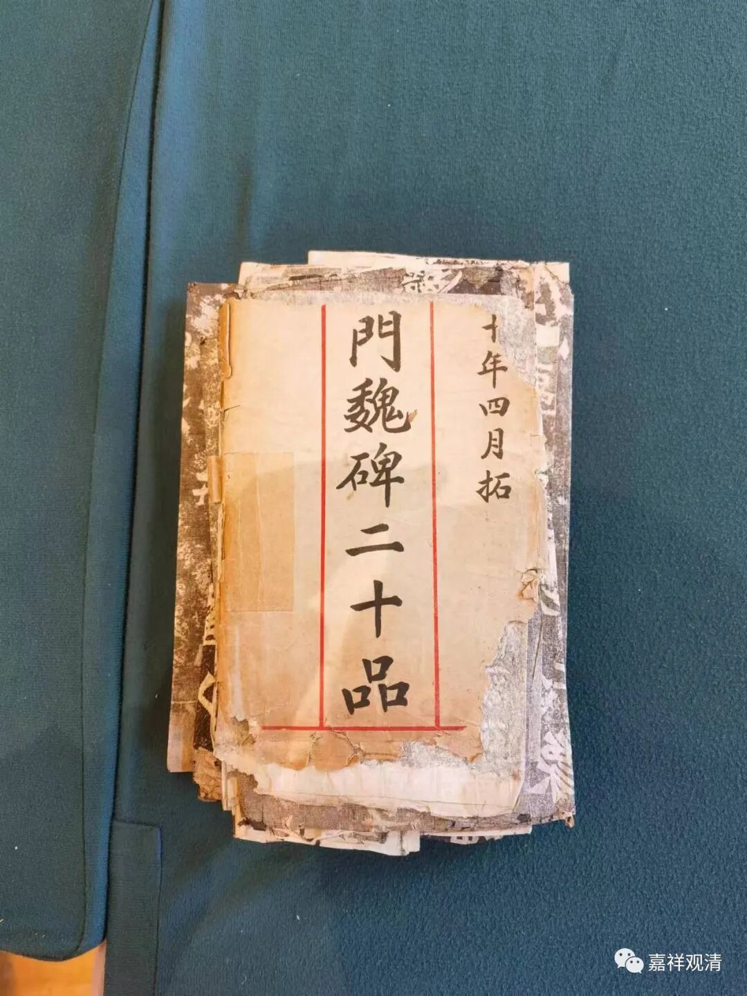 拍卖场的这件《龙门魏碑二十品》为清末所拓(肯定要晚于康有为提出《龙门二十品》),没有经过装裱,有一点点残破,原来应该有个简单的封套,也碎了。
