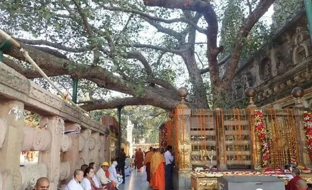 现在的这棵菩提树是“孙子”辈的——公元前 3 世纪前后,摩思陀从原来的菩提树上折了一根枝条带去斯里兰卡……十九世纪斯里兰卡佛教回传印度,又从斯里兰卡的这棵菩提树上折了一枝种回了菩提场。